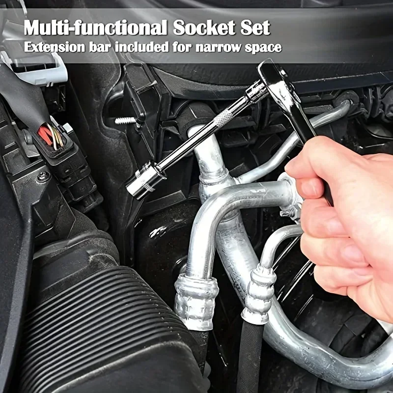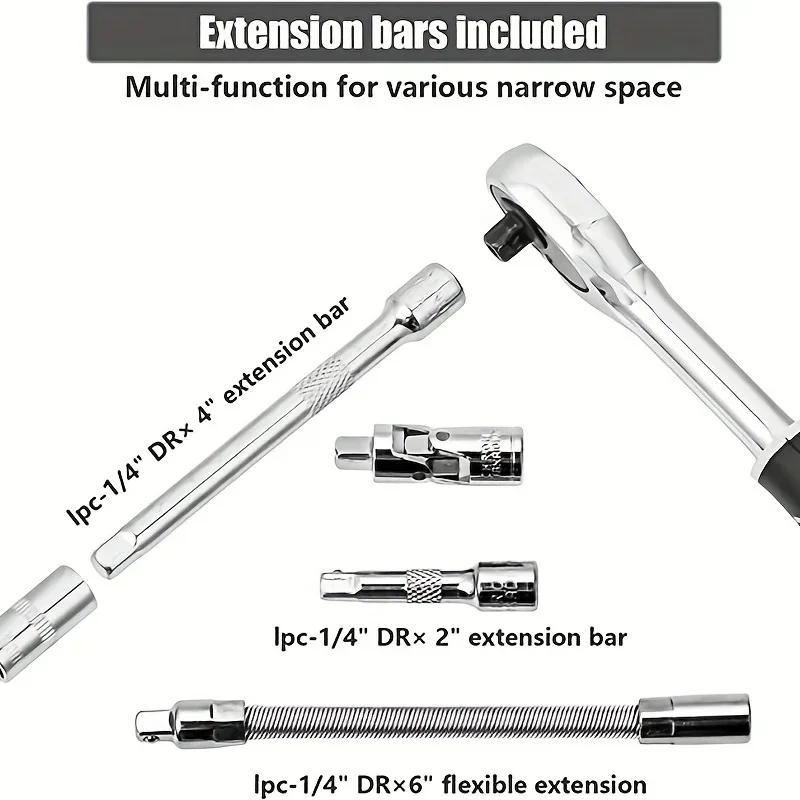 • مجموعة مقابس 1 بوصة:تضمن مجموعة المقابس مقاس 1 بوصة أن المقبس ذو الحجم المناسب متاح دائمًا، مما يجعل الإصلاحات أكثر كفاءة ودقة.